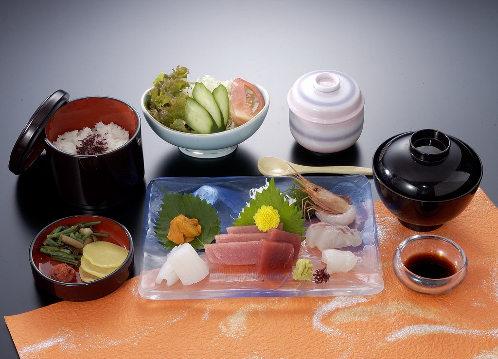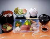 | ◆釜めし◆刺身◆野菜サラダ◆吸物◆漬物◆水菓子 |